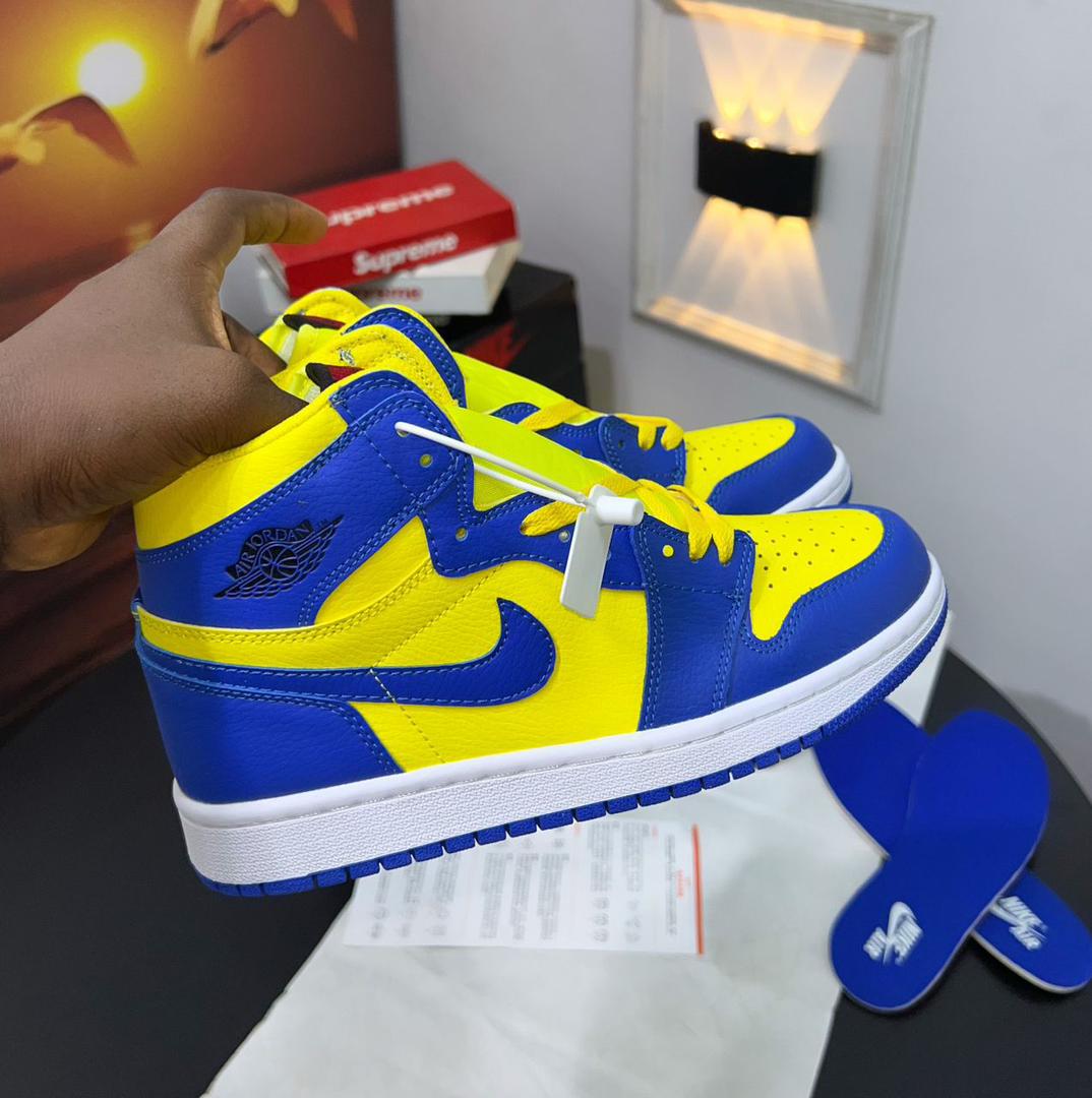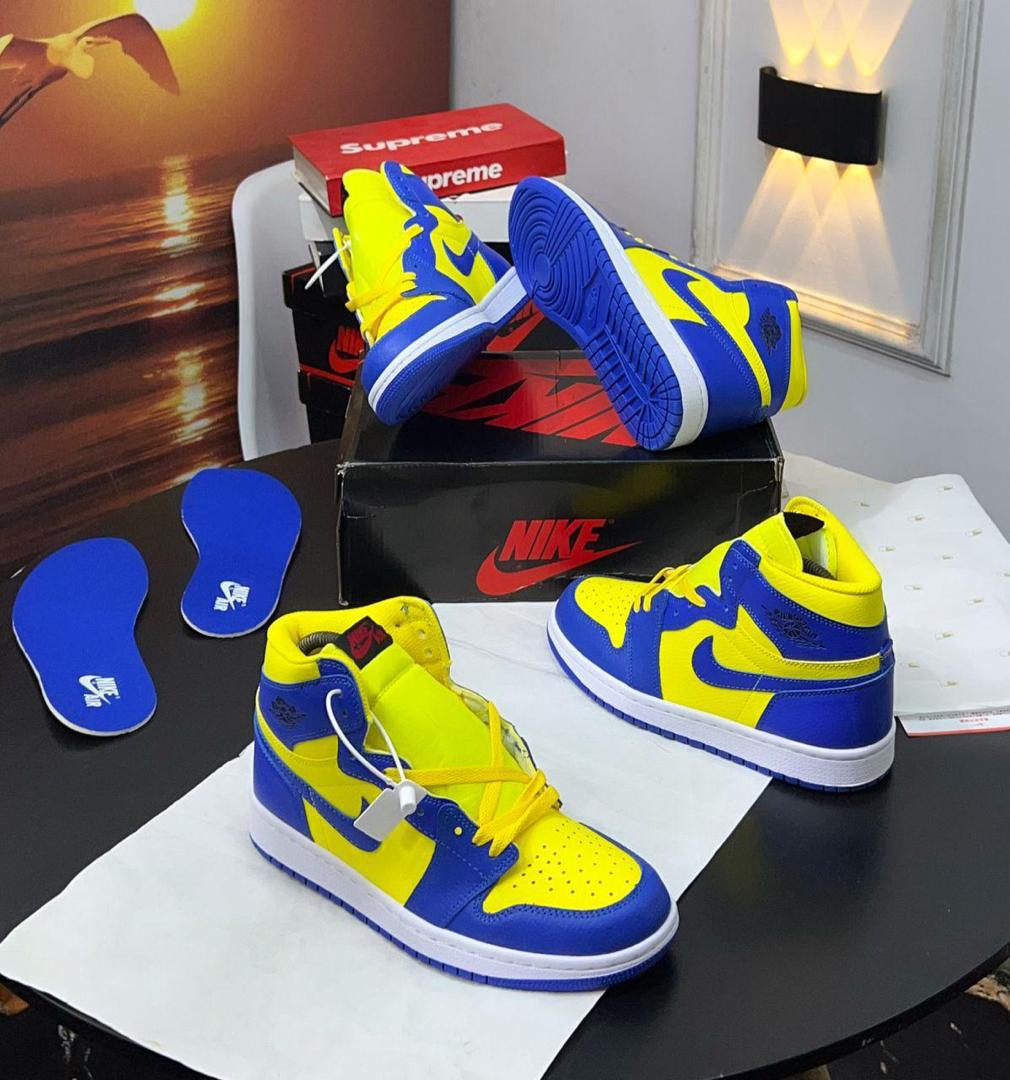 Step into legend status with these iconic Nike Air Jordan 1 High sneakers in a stunning Royal Blue and Varsity Maize colorway. Designed for the bold Nigerian gentleman who refuses to blend into the background, these shoes deliver a powerful fusion of basketball heritage and modern streetwear dominance that demands respect wherever you go.