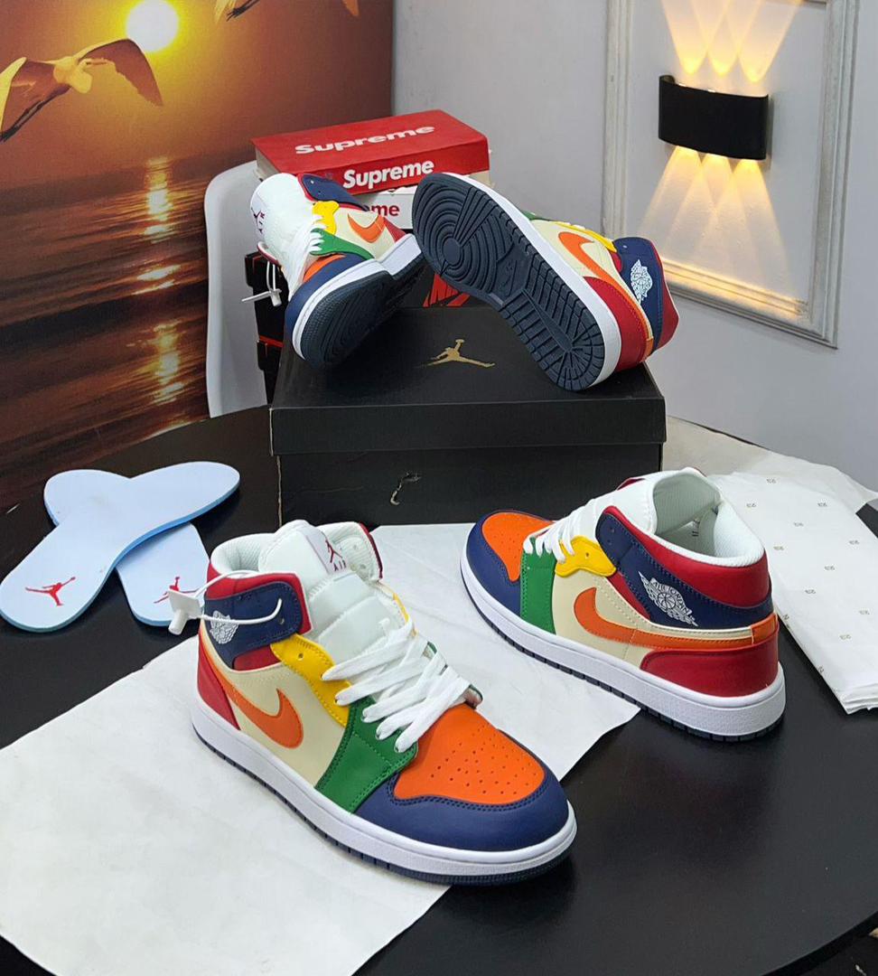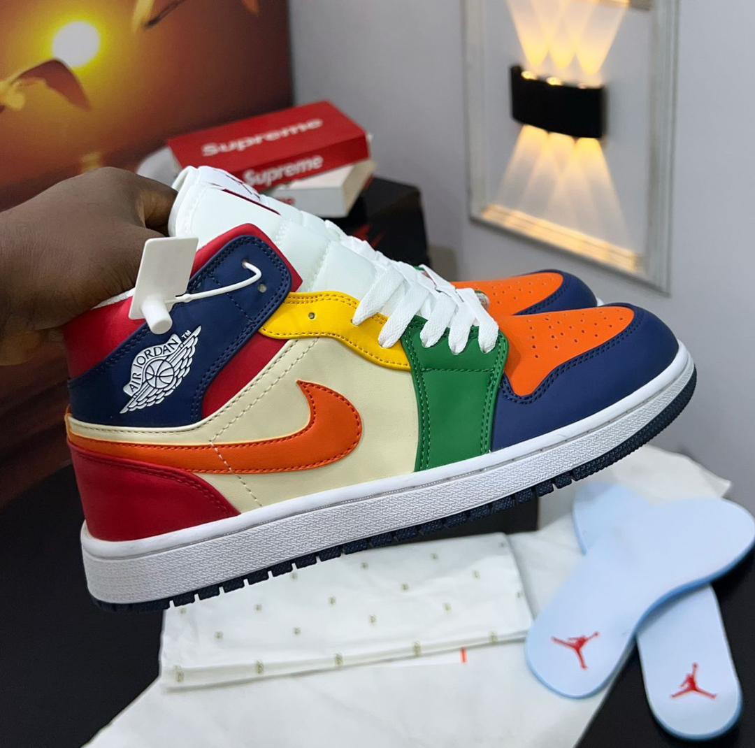 Step into vibrant legend status with these iconic Nike Air Jordan 1 Mid sneakers in a stunning multi-color blockade. Designed for the bold Nigerian gentleman who refuses to blend into the background, these shoes deliver a powerful fusion of basketball heritage and modern streetwear dominance that demands respect wherever you go.