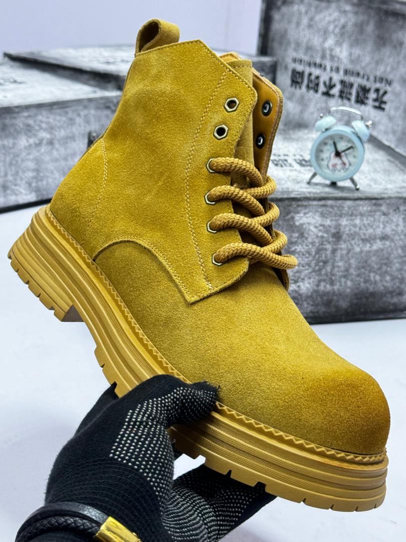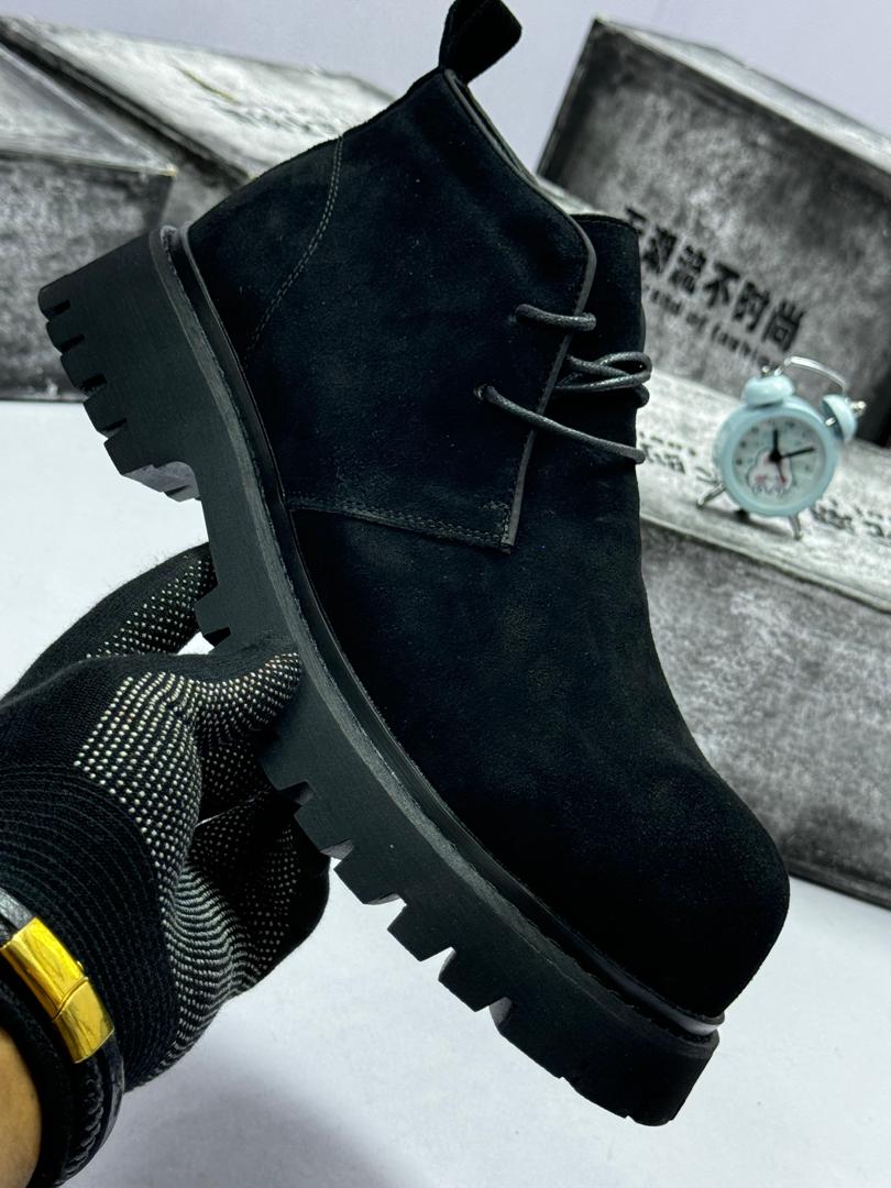 The upper is expertly crafted from premium suede, offering a soft, luxurious touch and a sophisticated matte finish that exudes understated cool. The sleek lace-up design ensures a secure, customized fit, while the pull tab at the heel makes stepping in and out effortless—perfect for the man who values both style and convenience. The showstopper is the massive, chunky lug sole. This isn’t just for aesthetics; it provides superior traction on Lagos streets, exceptional height enhancement for that commanding presence, and all-day comfort whether you’re navigating boardrooms in Victoria Island or dominating nightlife on the Island. The robust construction ensures these boots will serve you through countless seasons without losing their edge.